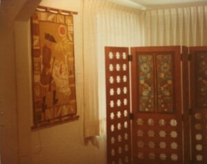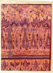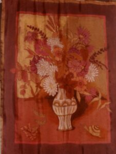 Unfortunately, neither Betty nor Charles were very interested in photography. They had a very basic cartridge camera, and even with that they did not photograph all of the batiks. The photographs above are the only ones which I have been able to find, and sadly, the quality is not good. This is a shame, because even first-rate photographs would have trouble capturing the subtlety and vibrancy of the colours and designs.